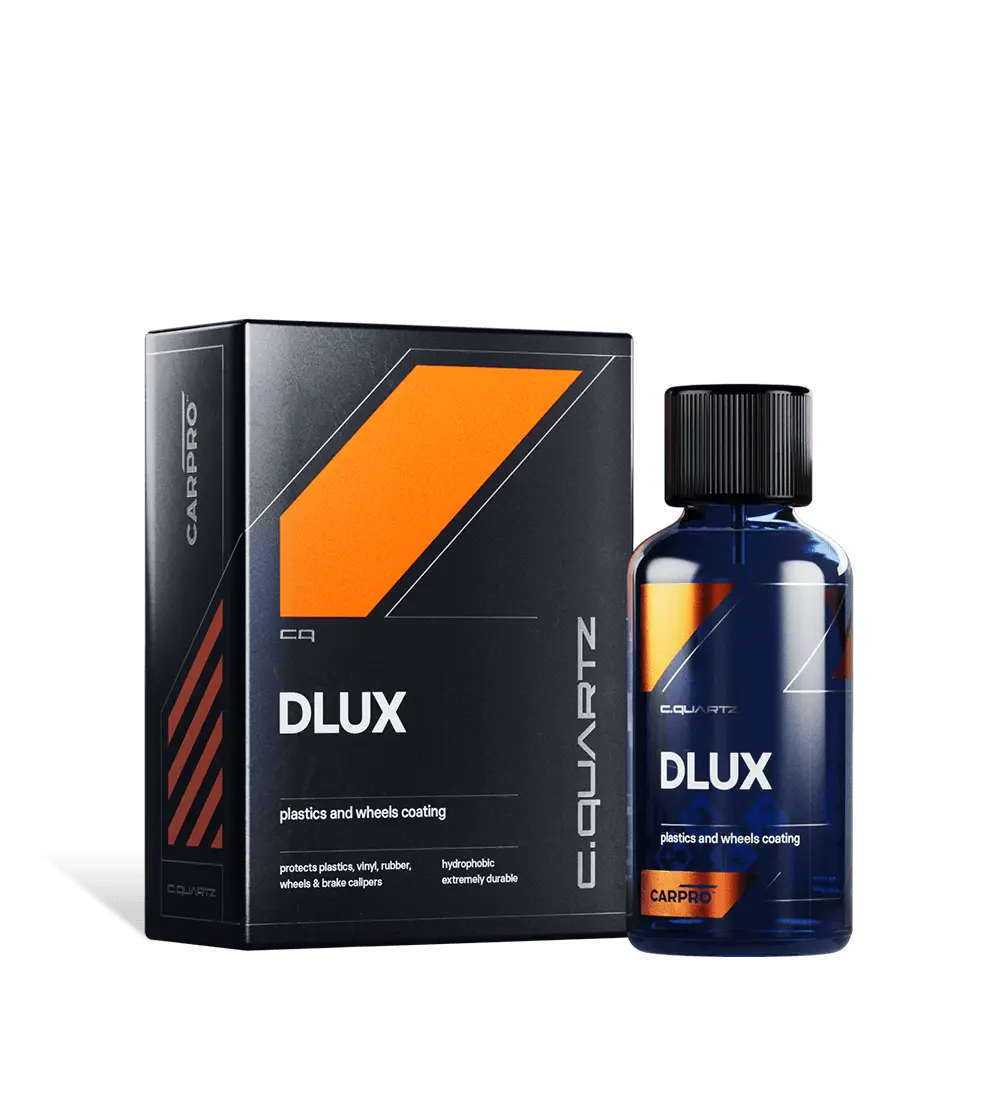 CarPro CQUARTZ DLUX is a professional-grade ceramic coating specifically engineered for exterior plastics, trims and alloy wheels. Using a high-concentration SiO₂ ceramic resin, DLUX restores faded plastics while forming a hard, chemical-resistant protective layer that dramatically improves durability, appearance and ease of maintenance.